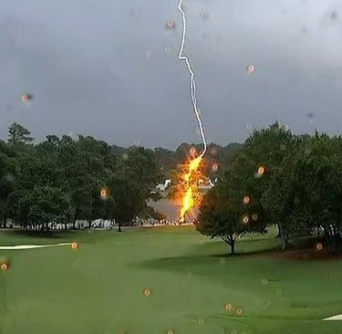 My husband and I were out on the golf course when a storm rolled in. He asked me to tend the pin, which, for non-golfers, means standing there holding a metal flag in a lightning storm while he putted. The moment lightning struck a nearby tree, I’m pretty sure I levitated, tossed the flag like it was on fire, and sprinted for the cart. Honestly, sometimes I wonder if he’s trying to collect the life insurance.